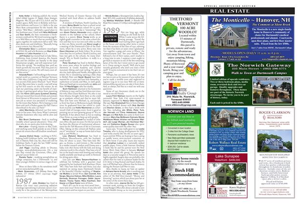 "George Farmer is putting his Ph.D. in biogenetics to work as an analyst at Wachovia and lives in N.Y.C. with wife Nancy and baby girl Ruby. Also in New York City is Clare Killeen, who works at Citibank. John and Jennifer Lane Hamlin are loving life in Austin, Texas, where John gets to go to his ranch—when he isn't working at Dell or chasing around their three boys (Tucker, Will and Jack).