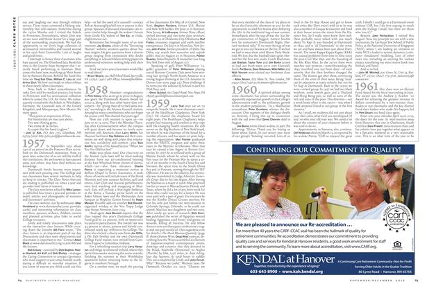 Marianne and Bob Monahan were seen touring the Kennedy Space Center in March. It is another case of the “1959 connection.” Margie and Pete Schreier were doing the same. While Bob and Pete did not know each other in college, they struck up a conversation while waiting for the tour bus and found they are classmates. The Monahans were in the sixth week of a three-month tour of the country. Starting from home in British Columbia, they made their way through the West, came across the Southwest and were heading up through New England to return home across the Northern states.