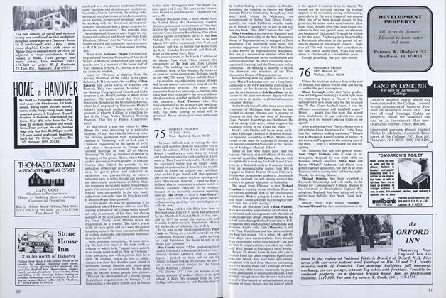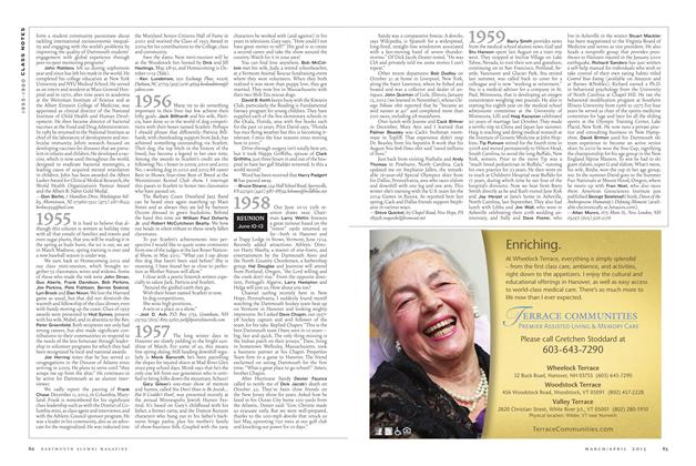 A headline in the Valley News July 14 read “Hanover Man Joins Board of Directors of Hanover Conservancy.” The man is our own Jim Wooster. It stated that Jim (and Betsy) moved to Hanover after his 33-year career with New England Telephone. It adds that since retiring Jim has been involved in many Dartmouth activities and has served on the board of the Visiting Nurse Association & Hospice. He also belongs to the Appalachian Mountain Club’s 4,000 Footer Club and is a section adopter of the Appalachian Trail. It left out that Jim leads the 1959 hikes during minireunions.
