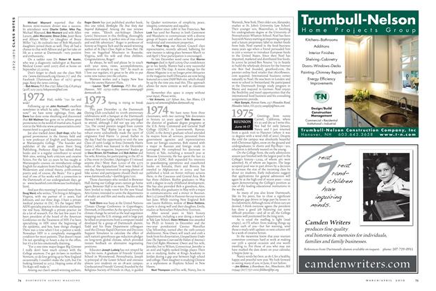 Please respond to the reunion solicitations. It would be great to see as many classmates as possible. Check www.alumni.dartmouth.edu
