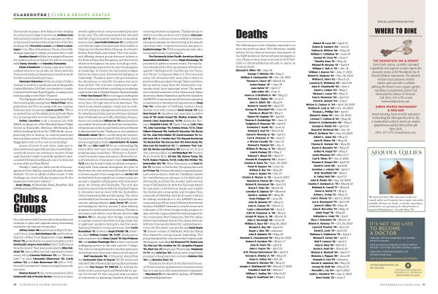 Finally, please note this upcoming event by the Dartmouth Uniformed Service Alumni (DUSA). DUSA—in partnership with the College, Dartmouth student veterans organizations and the Dartmouth Club of Greater Boston—is holding their first banquet outside of Hanover this coming Veterans Day weekend and hope you can join. The event is the sixth annual Dartmouth veterans banquet and fifth annual James Wright Award presentation at the Langham, Boston on Saturday, November 11. The event will honor our veterans and is open to the entire Dartmouth community. More information can be found at http://dusa.dartmouth.org or by contacting Winnie W. Huang ’92 at president. dusa@dartmouth.edu.
