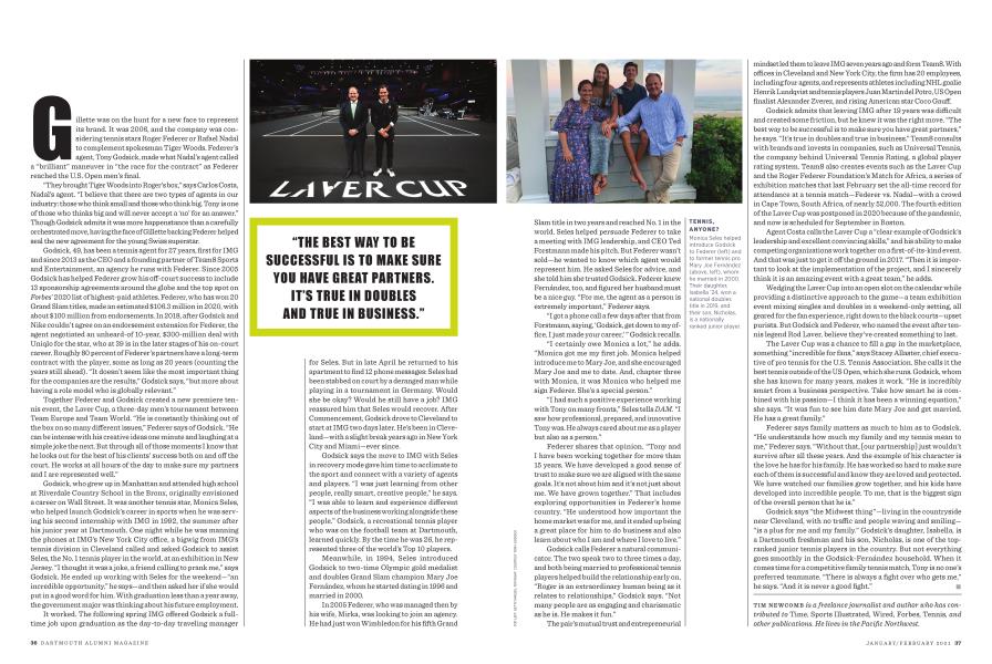 JANUARY | FEBRUARY 2021 TIM NEWCOMBAgent Tony Godsick ’93 and tennis superstar Roger Federer join up to create a grand slam partnership.