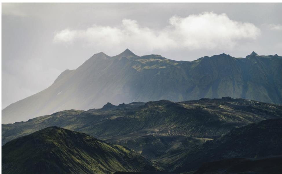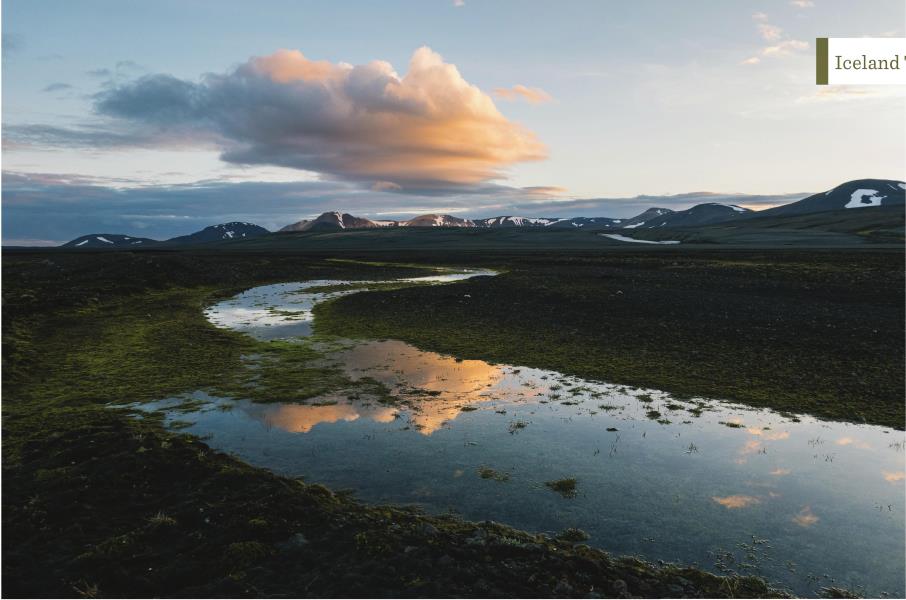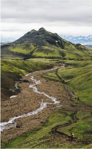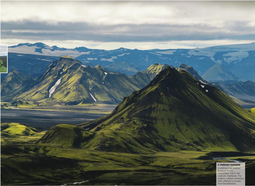 A VERDANT EXPANSE A striking view greeted Burakian on the Laugavegur Trail in the Icelandic Highlands.