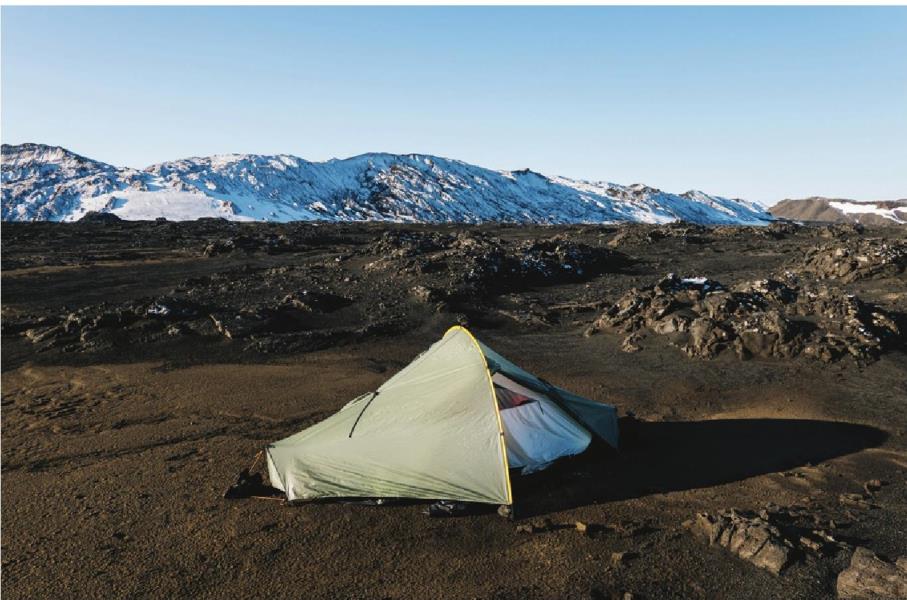 SOLITARY GAZE From far left: Burakian’s lightweight home away from home could withstand 50-m.p.h. winds