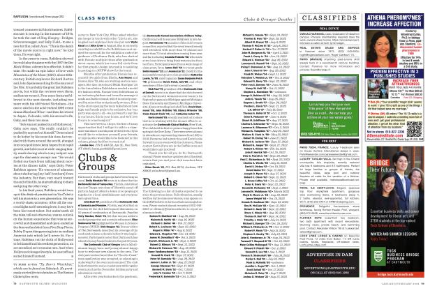 Thank you for all you do for Dartmouth alumni! Please send me updates about the great events that you and your club members have organized. —Stina Brock '01, P.O. Box 9274, Jackson, WY 83002; stina.brock@gmail.com